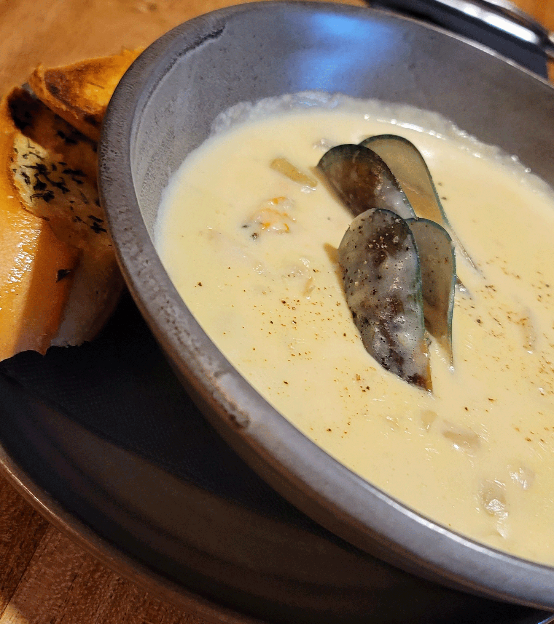 When we arrived Marlin’s Ridge Bed and Breakfast the weather declined to cooperate with our plans. The wind picked up and the skies dumped rain. The rising sea conditions prevented Tom from doing his planned dives on Poor Knight’s Island, reputed to be among Jacques Cousteau’s top twenty dive sites in the world. We rearranged the schedule with a hope that the weather would clear by Monday. For dinner we walked down the hill from our lodgings to Schnappa Rock Restaurant. Author’s Note: Apparently we made a huge error in not making a reservation. Eventually we were seated and were served a good but overall not outstanding meal.